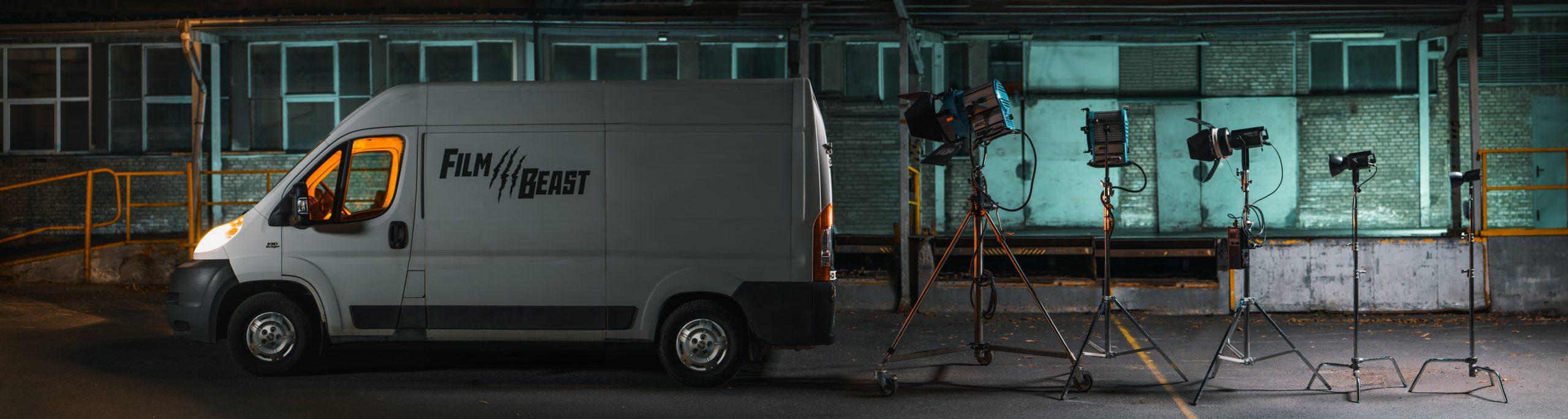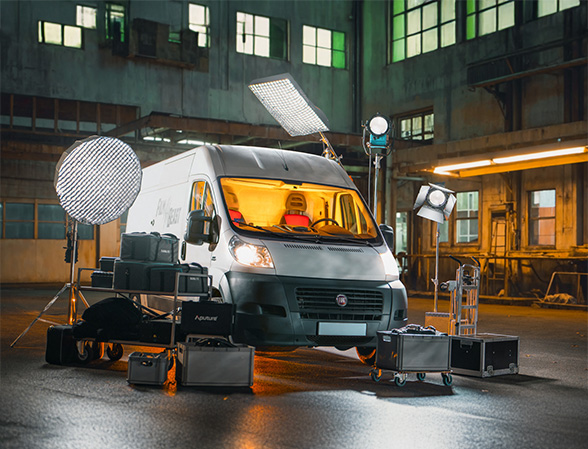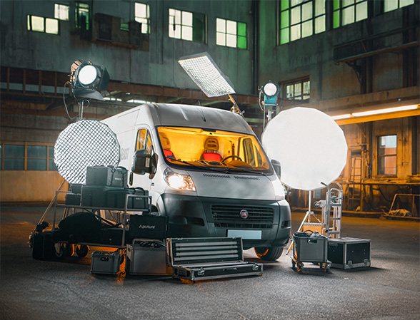 Masz możliwość skomponowania indywidualnego pakietu sprzętu oświetleniowego zgodnie z wymaganiami Twojej produkcji lub skorzystania z gotowego zestawu, który sprosta nawet najbardziej wymagającym zadaniom. Nasz van oświetleniowy to mobilne centrum techniki filmowej, wyposażone w nowoczesne lampy, statywy, zasilanie i niezbędne akcesoria.