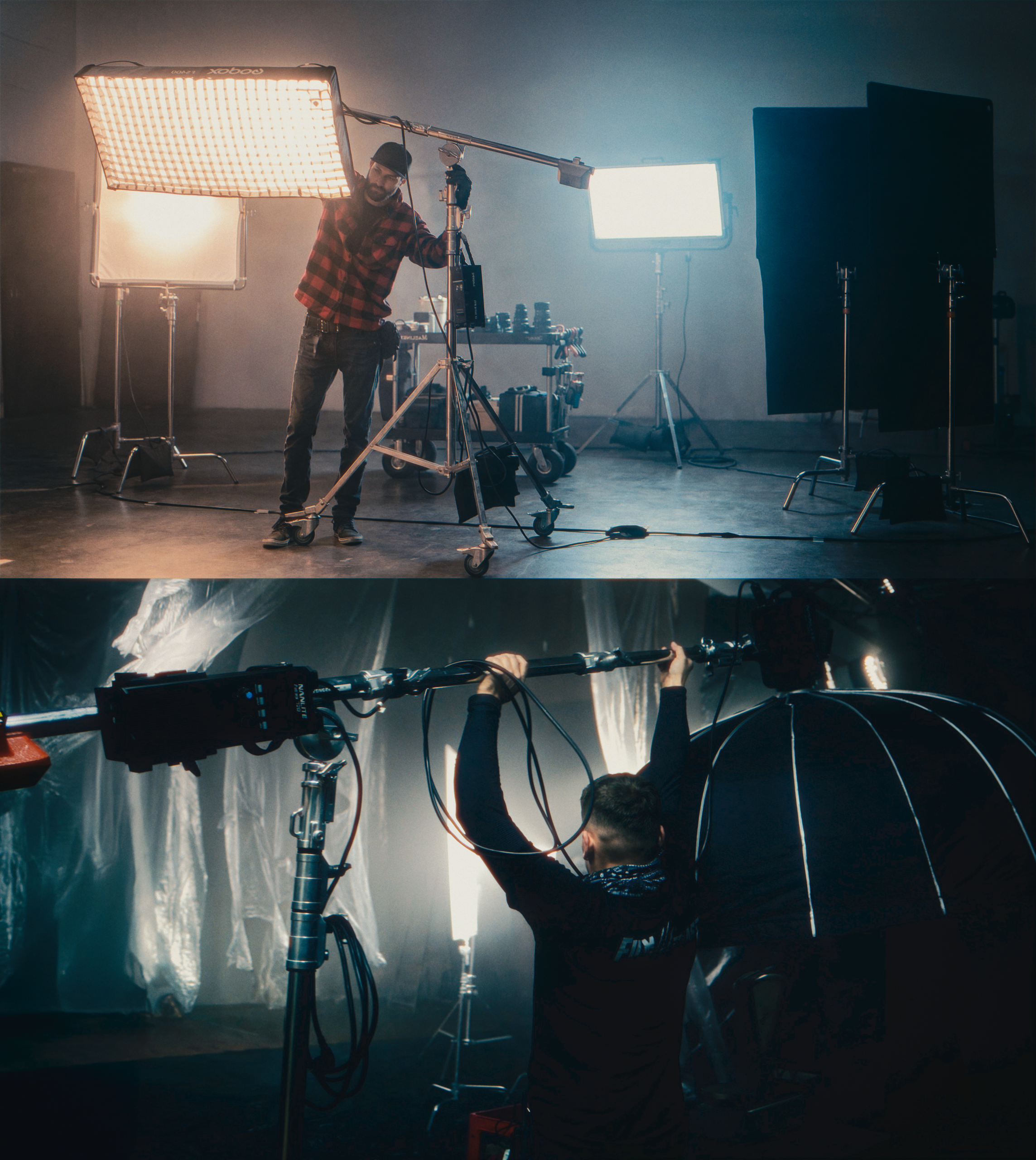 Korzystamy z własnego zaplecza sprzętowego, co pozwala nam utrzymać tempo pracy i dopasowywać set-up do zmieniających się warunków, nie tracąc jakości ani czasu. Na planie dbamy o rytm, bezpieczeństwo i przejrzystą komunikację — tak, aby cały proces był dla klienta komfortowy i przewidywalny.
