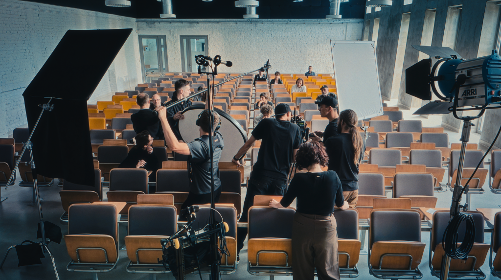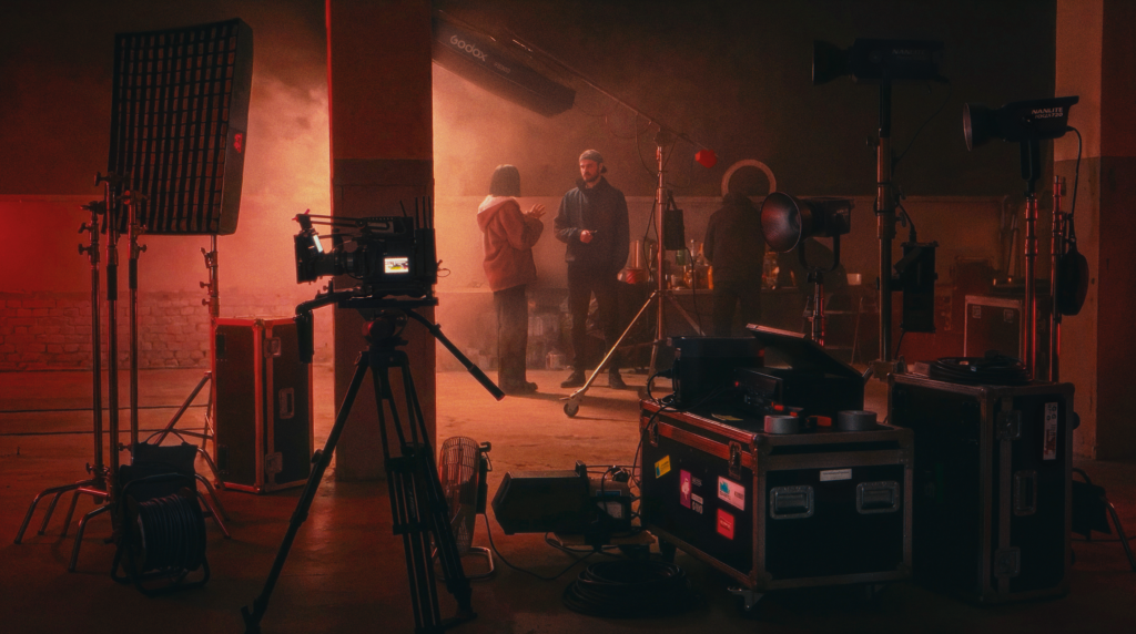 Tutaj plan staje się rzeczywistością, w którą wchodzimy ze sprawdzoną, zgraną ekipą — operatorami, oświetleniowcami, gripem i techniką, która pracowała razem przy wielu realizacjach.